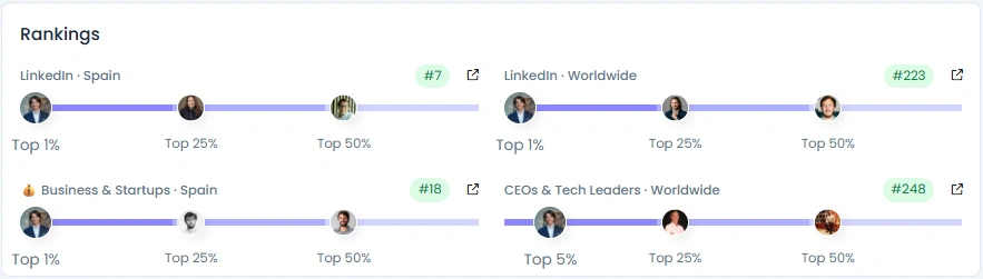 Alejandro ha aumentado su audiencia de manera constante, pasando de 70 000 a 138 000 seguidores en cuatro años, lo que demuestra un compromiso constante y orgánico. Su Influence Score de 8.024 puntos lo sitúa en el 1% más alto de LinkedIn en España, ocupando el puesto #7 a nivel nacional. Ocupa posiciones sólidas a nivel mundial y se encuentra entre el 5% más alto entre los directores ejecutivos y líderes tecnológicos. Con una alta calidad de interacción de 88/100, sus publicaciones suelen generar debates reflexivos y opiniones sobre el sector de profesionales de la hostelería de todo el mundo.