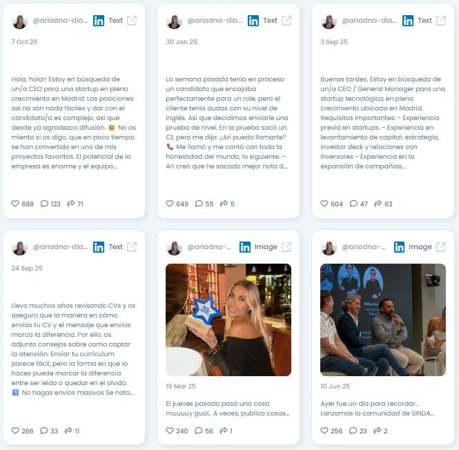 Ariadna demuestra que la contratación puede ser transparente, amable y eficaz. Enseña mientras busca y genera confianza en ambos lados de la mesa. Su contenido ayuda a los fundadores a avanzar más rápido y a los candidatos a apuntar más alto. Si quieres una voz de contratación con alcance y resultados reales, esta es la que debes tener en cuenta.