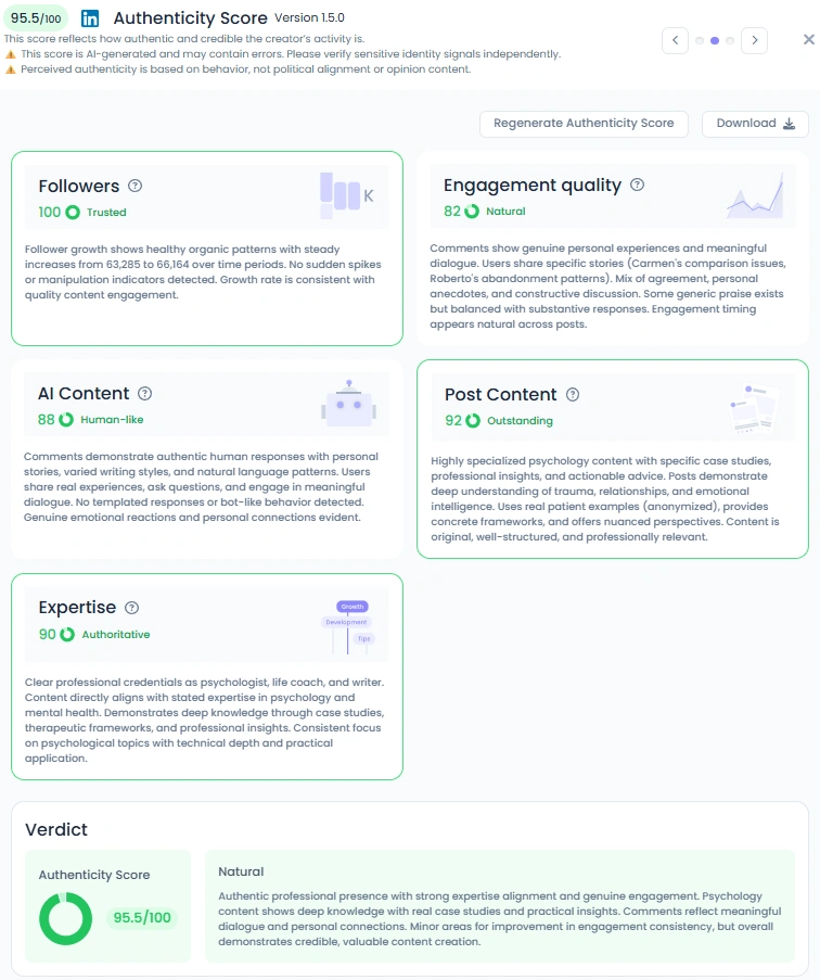 Con una puntuación de autenticidad de 95,5/100 en Favikon, Emma lidera con empatía y transparencia. Comparte estudios de casos anónimos y reflexiones personales, mostrando el equilibrio entre la distancia profesional y la conexión emocional. Sus publicaciones no persiguen las tendencias; conectan profundamente a través de la sinceridad y la sabiduría. Ya sea que hable sobre la angustia o el insomnio, Emma escribe con un toque humano que genera confianza y pertenencia en su comunidad.