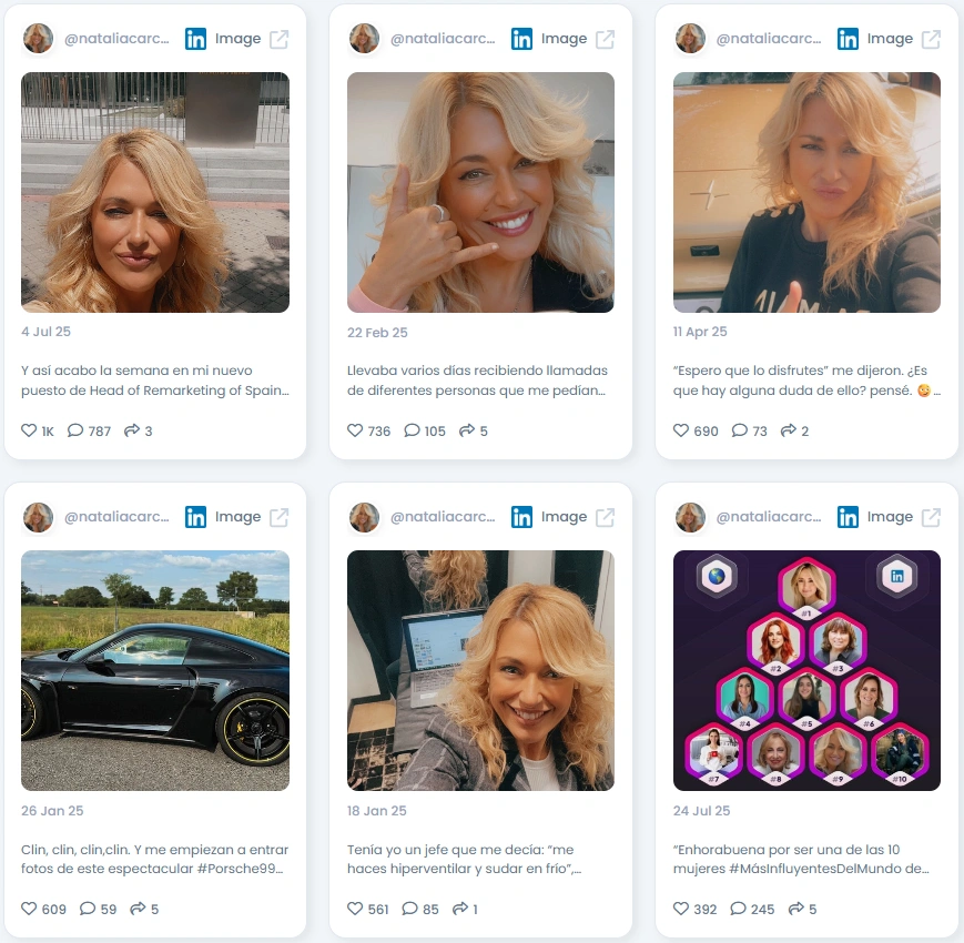 Con una puntuación de autenticidad de 96,5/100 en Favikon, Natalia ejemplifica lo que significa generar influencia con el corazón. Sus seguidores interactúan de forma natural y, a menudo, comparten historias personales e ideas profesionales inspiradas en sus publicaciones. No se basa en plantillas ni en frases corporativas, sino que opta por su propio estilo enérgico y conversacional. Sus fotos, sus momentos sinceros y su humor ligero hacen que su feed sea personal y confiable, al tiempo que mantiene su imagen de líder sólida en la industria automotriz.