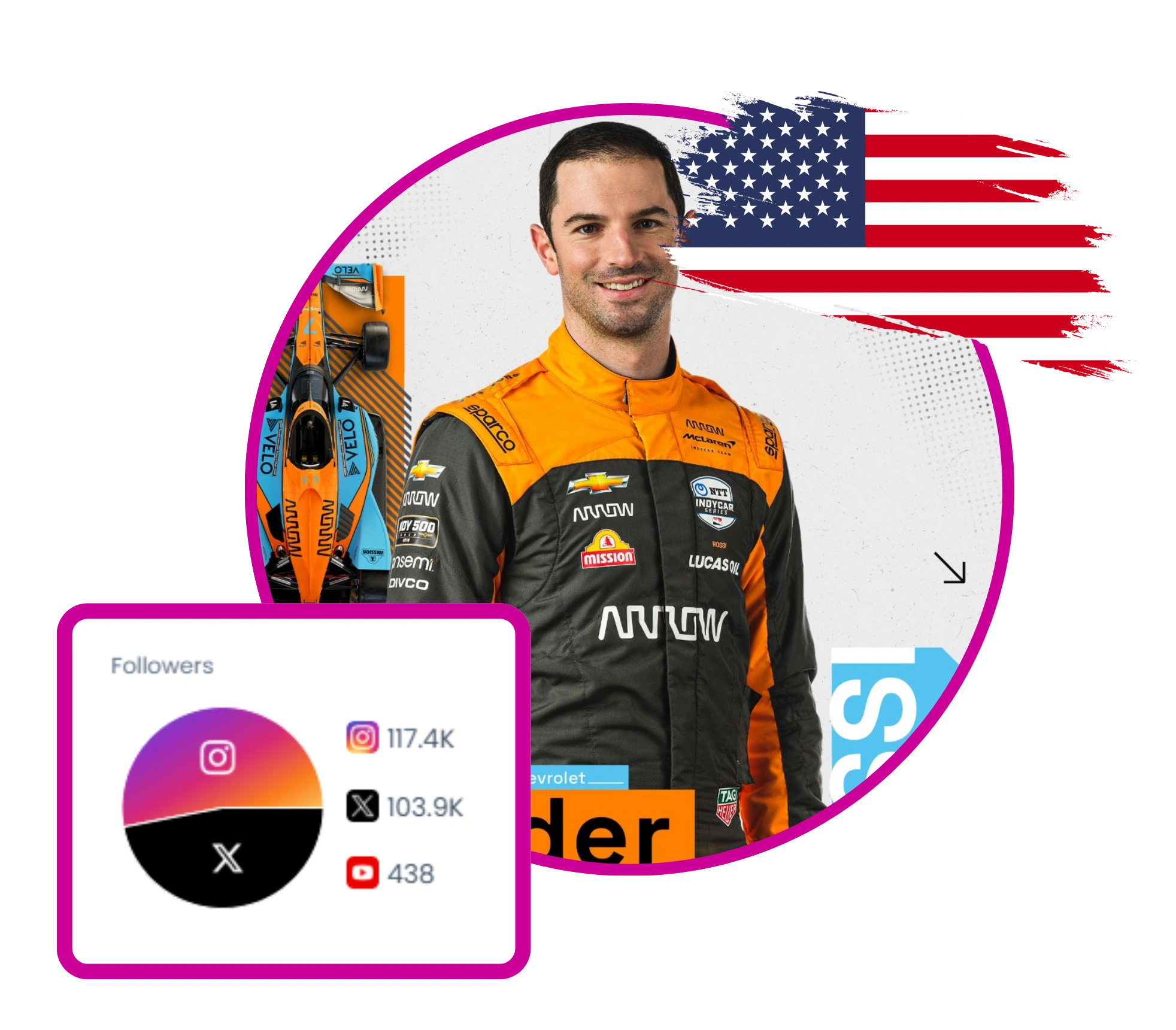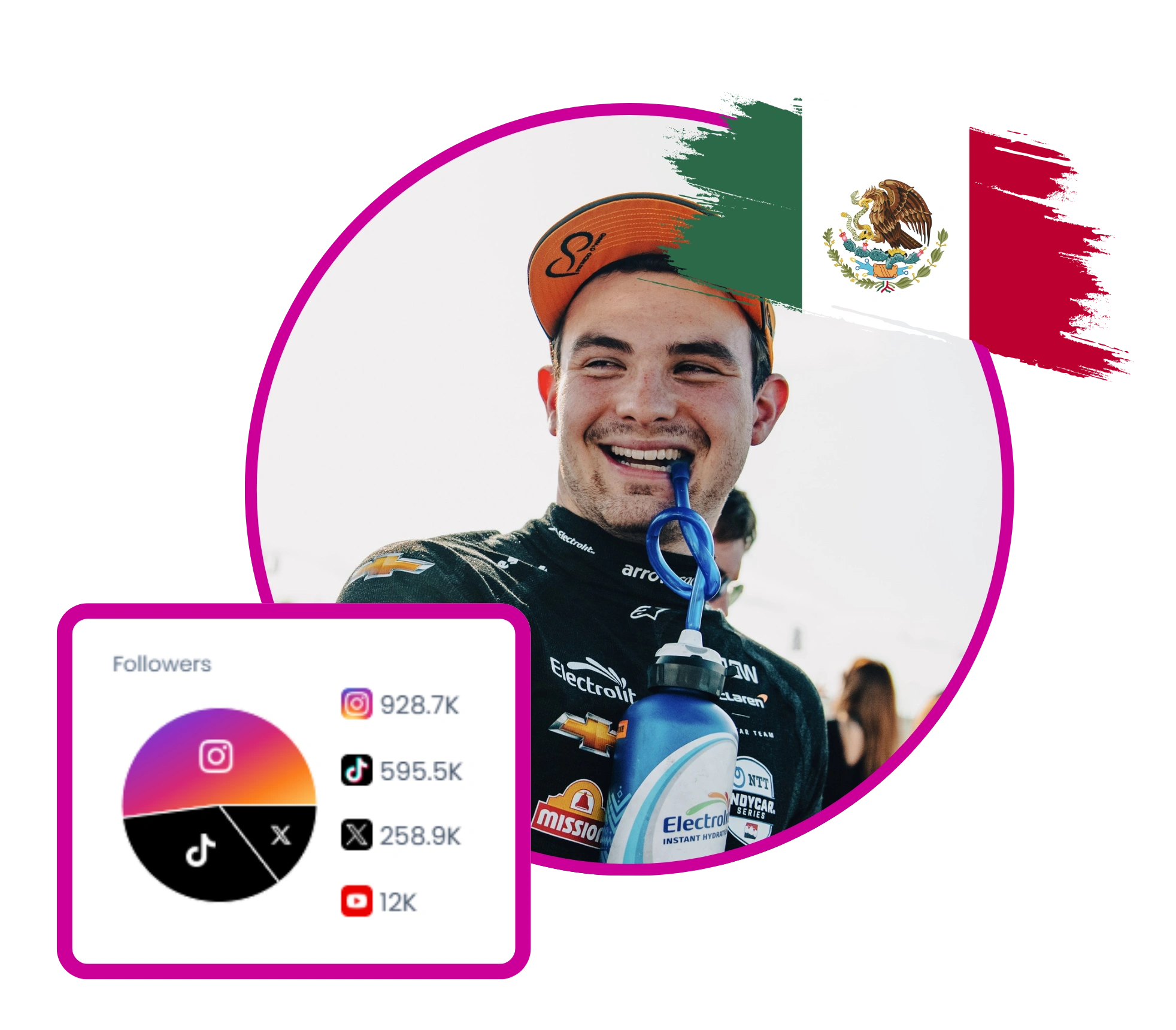 Patricio 'Pato' O’Ward is an IndyCar driver and McLaren collaborator, highlighting high-speed racing, sponsor partnerships, and Mexican heritage. His content blends race updates, behind-the-scenes moments, and brand collaborations across Instagram, TikTok, and YouTube.