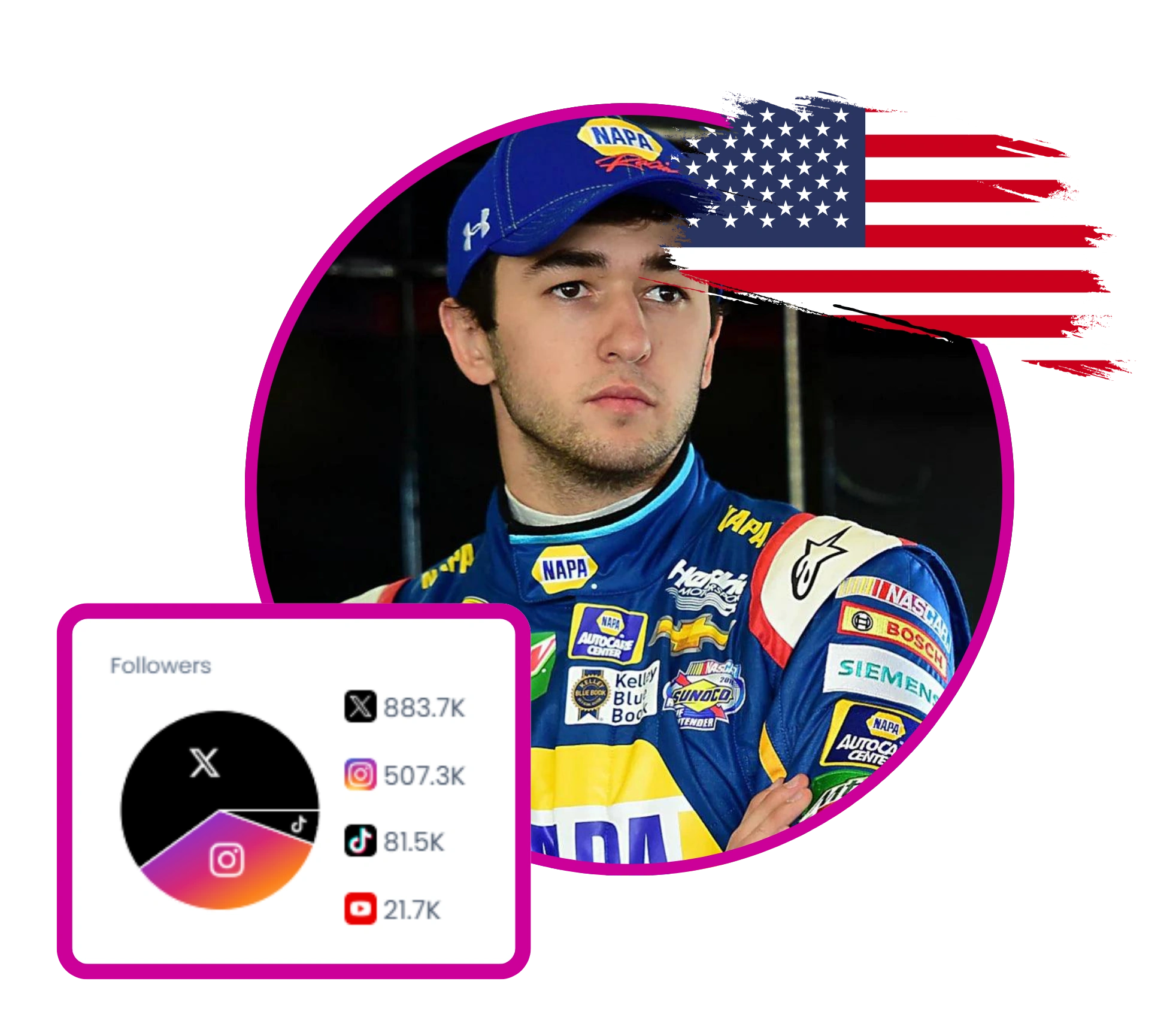 Chase Elliott is a prominent NASCAR driver, known for his engaging social media presence that showcases his racing career and personal interests. He shares updates on races, behind-the-scenes content, and interactions with fans. His posts often highlight his achievements, such as being a 2020 NASCAR Cup Series Champion, and feature a mix of humor and excitement related to motorsports. Elliott's content resonates with a passionate fanbase, reflecting his status as a leading figure in the racing community.