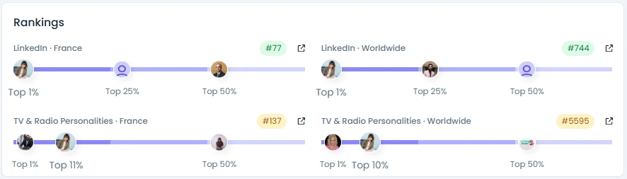 Obtenez des informations complètes et activables sur les profils des créateurs.
