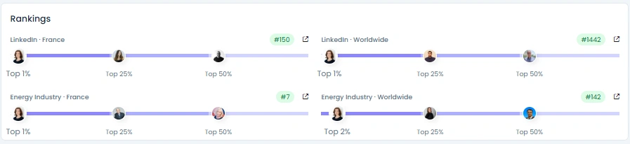 Le nombre d'abonnés a augmenté régulièrement, passant d'environ 35,7K à 53,9K en quatre ans, sans pic suspect. La qualité de l'engagement se situe au milieu des années 1980, avec un dialogue technique significatif plutôt que des éloges génériques. Post Content obtient un score exceptionnel de 95 grâce à des spécifications, des partenariats et des résultats spécifiques. Son score d'influence Favikon est de 7 245 points, se classant parmi les 1 % les plus élevés en France et les 2 % les plus élevés dans la catégorie énergétique mondiale.