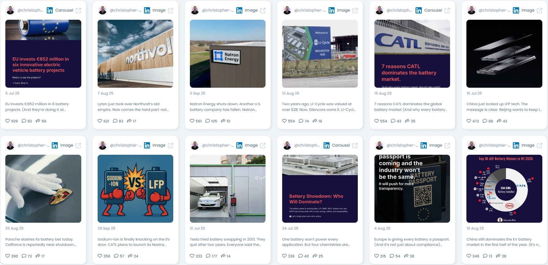 Christopher Chico ne se contente pas de partager des mises à jour sur l'industrie. Il fournit aux professionnels les informations dont ils ont besoin pour comprendre la prochaine vague d'innovation énergétique. Son expertise technique, sa crédibilité et son style accessible font de lui l'une des voix les plus fiables de LinkedIn dans le secteur des batteries. Pour les marques, les décideurs politiques et les pairs du secteur, son influence est un signal qui mérite d'être suivi.