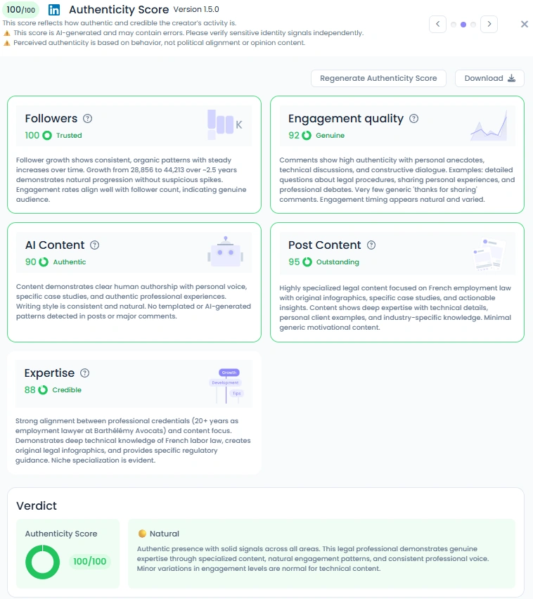Favikon l'évalue à Authenticité 100/100. Les commentaires témoignent d'un véritable dialogue avec des cas, des désaccords et des détails techniques. Le sien Contenu de la publication 95 et Qualité de l'engagement 92 reflètent une expertise approfondie et une véritable confiance de la communauté. Rien de modélisé. Il suffit d'une paternité humaine claire qui respecte le temps du lecteur.