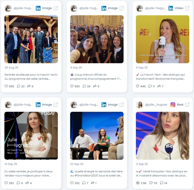 Julie Huguet ne se contente pas de parler de startups. Elle met en relation les fondateurs, les politiques et l'industrie afin qu'ils puissent se développer plus rapidement. Ses publications ressemblent à de rapides briefings depuis le premier rang. Clair, optimiste et intégré à l'écosystème.