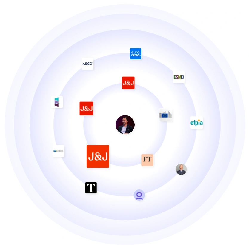 Parmi ses activités figurent Johnson & Johnson Innovative Medicine, l'EFPIA, la Commission européenne, l'OCDE, l'ASCO et des médias tels que Financial Times et Euronews. Vous rencontrerez également des régulateurs de haut niveau, des responsables cliniques et des fondateurs. Cette combinaison témoigne d'une portée crédible au sein des entreprises, des institutions et des politiques. Il s'agit d'un réseau conçu pour les résultats, pas pour le bruit.