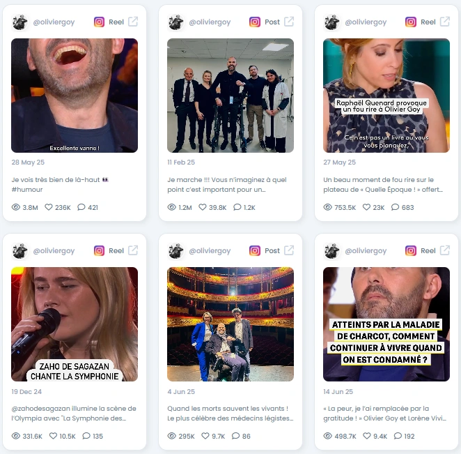 Le cercle d'Olivier comprend des neuroscientifiques, des équipes hospitalières, des philanthropes et des groupes de médias. Vous y verrez l'Institut du cerveau de Paris, des diffuseurs nationaux, des agences de création et des leaders technologiques. Les chercheurs, les fondateurs et les personnalités publiques commentent avec des prénoms et des détails. Ce mélange présente l'histoire d'un patient dans les salles de police et aux heures de grande écoute.