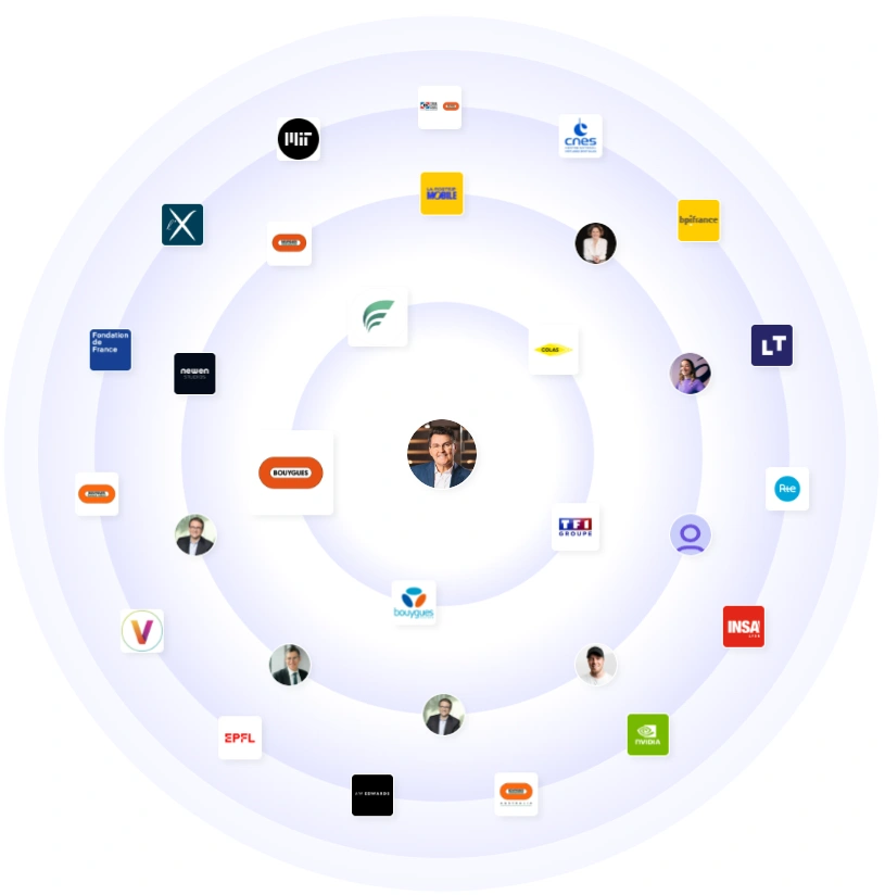 Son activité couvre la famille de marques Bouygues (Bouygues Construction, Bouygues Telecom, TF1), ainsi que des partenaires institutionnels et technologiques. Vous y croiserez des dirigeants du CNES, de l'INSA, de l'EPFL et de l'industrie. Il collabore également avec des groupes de médias et des acteurs de l'innovation, des studios aux leaders des semi-conducteurs et de l'IA. Il s'agit d'un vaste réseau intersectoriel qui témoigne de la portée, de la confiance et de l'influence.