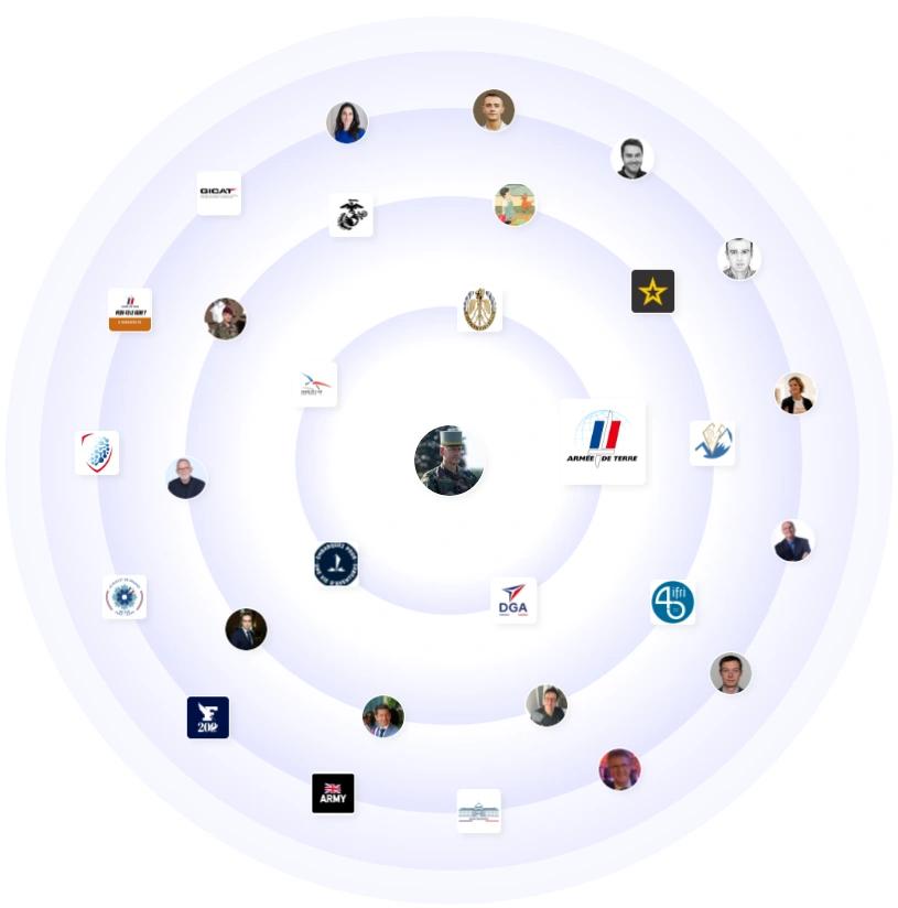 Le réseau de Pierre est construit autour de hauts fonctionnaires, d'institutions de défense mondiales et de branches militaires alliées. Ses liens étroits incluent l'Armée de Terre française, la DGA et des partenariats avec des alliés de l'OTAN tels que l'armée américaine et l'armée britannique. La présence d'acteurs de l'industrie de défense tels que le GICAT et les écoles nationales de défense reflète son rôle central dans l'écosystème opérationnel français. Chaque connexion ajoute de la crédibilité et de la profondeur à son influence, qu'il s'agisse de spécialistes de la doctrine militaire ou de dirigeants de la défense internationale.