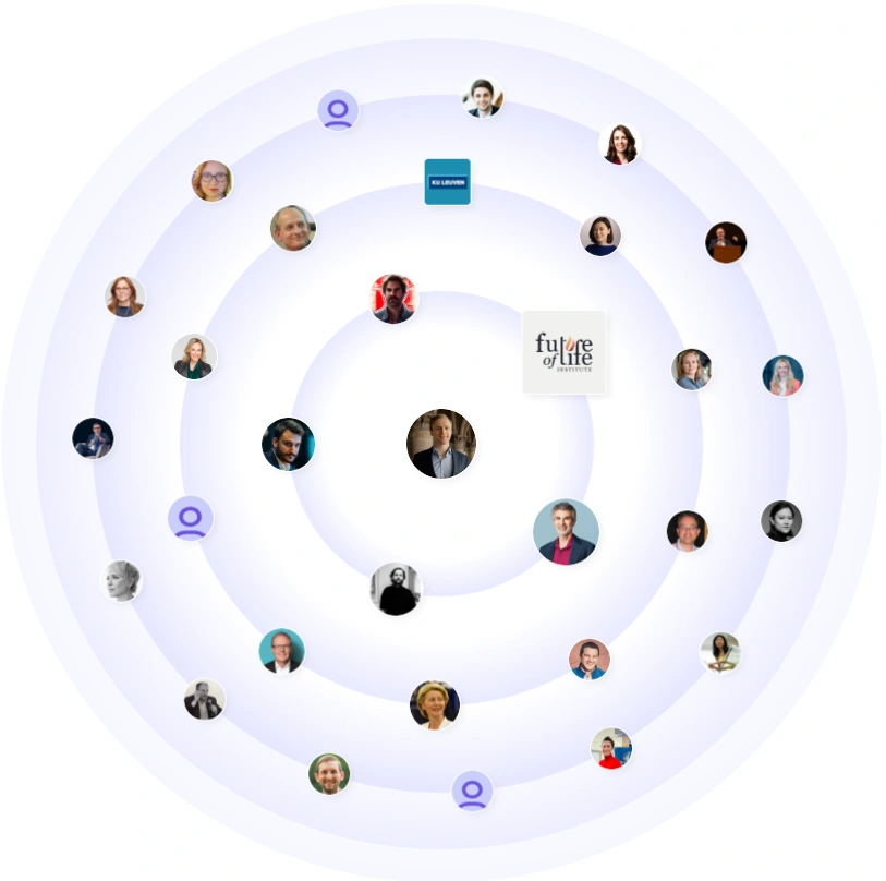 Le réseau de Risto est centré sur le Future of Life Institute, la KU Leuven et les institutions de l'UE. Il est entouré de dirigeants politiques, de chercheurs en IA, d'éthiciens et de voix de la société civile. Vous y trouverez des membres de la Commission, des membres de la communauté des chercheurs et d'éminents défenseurs de la sécurité. Cette combinaison lui confère de la crédibilité dans les domaines de la réglementation, de la science et du dialogue public.