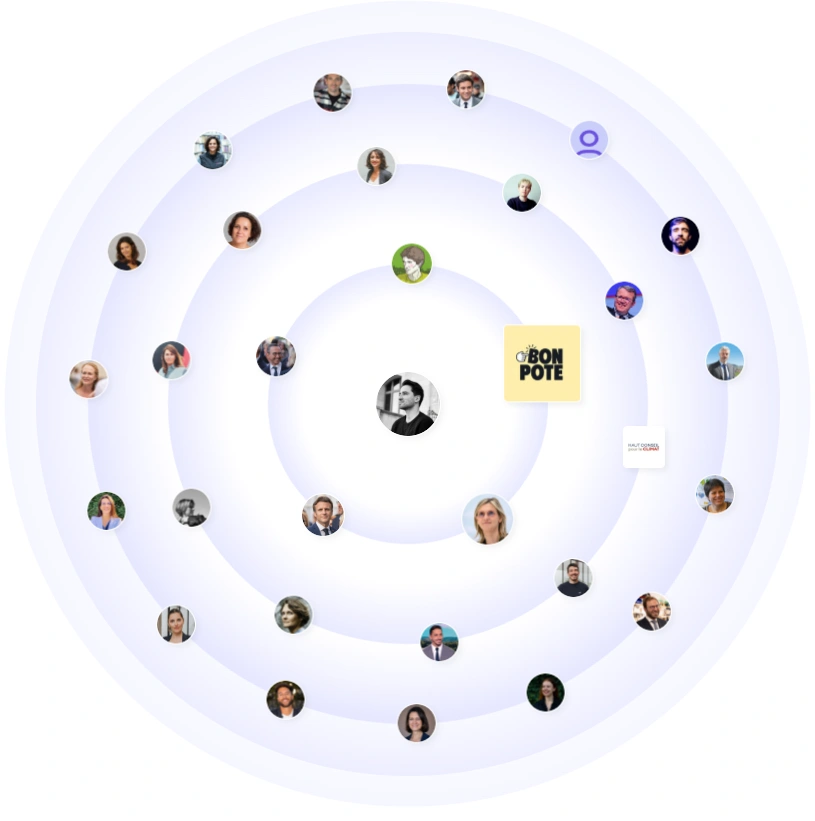Son orbite mêle des chercheurs, des décideurs politiques, des ministres et des entrepreneurs du climat. Bon Pote occupe une place centrale, aux côtés d'institutions publiques et d'experts reconnus qui interagissent avec ses fils de discussion. Le cercle comprend des conseillers, des adjoints et des dirigeants d'ONG qui influencent le débat national. Ce réseau confère à ses enquêtes une portée médiatique et une crédibilité dans les couloirs du parlement.