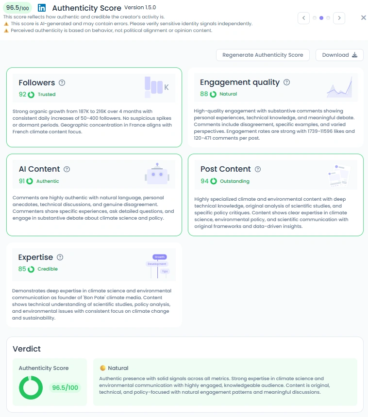 La politique évolue rapidement. L'IA accélère la désinformation, tandis que les impacts climatiques accélèrent la politique. La France joue un rôle de premier plan en matière de réglementation européenne, et Thomas siège là où la science rencontre la volonté du public. Sa chaîne est à la fois un système d'alerte et un guide d'étude, ce qui est exactement ce dont les gens ont besoin cette année.