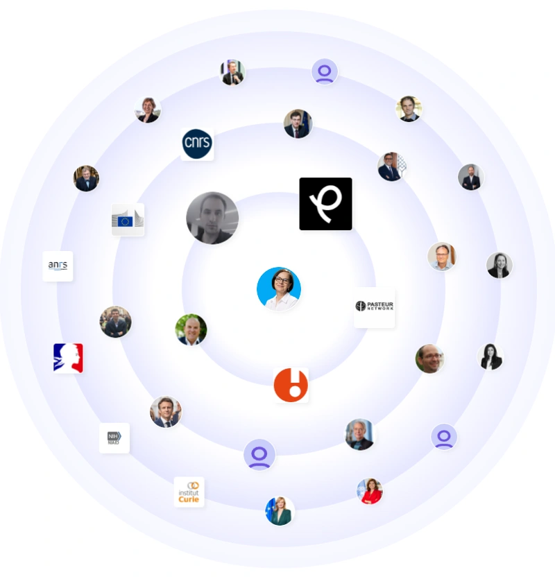 Son cercle s'étend CNRS, Curie Institute, le Commission européenne, le ANRS, et le Réseau Pasteur. Des ministres, des directeurs d'instituts et des universitaires de premier plan apparaissent dans ses commentaires. Des collaborateurs internationaux et des directeurs de programmes amplifient ses mises à jour. Le réseau signale une autorité scientifique ayant une portée politique.