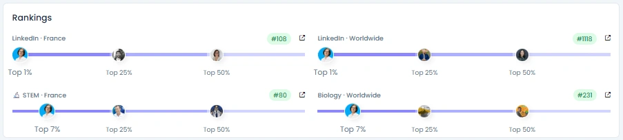 Son audience est passée de 5 307 à 40 592 abonnés en plus de 4 ans, avec des courbes organiques qui se sont accélérées après avoir assumé la présidence Pasteur. La qualité de l'engagement est 94, Post Content obtient un score de 95 et Expertise un score de 98. Elle Le score d'influence est de 6 929 points, avec des classements dans le Top 1 % sur LinkedIn en France (#108) et dans le Top 7 % en biologie dans le monde (#231).