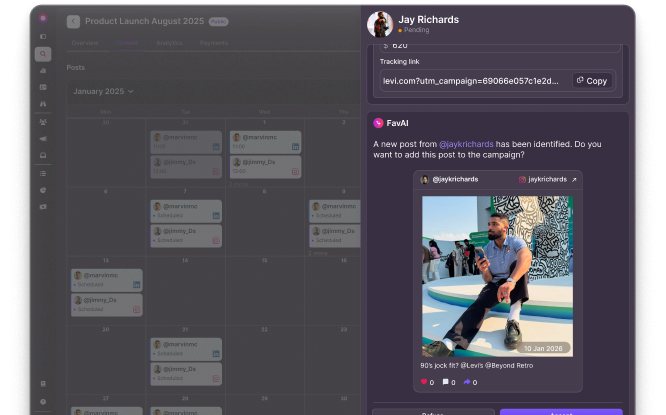 Yes. Favikon tracks creator posts in real time so you can see who has published, what they posted, and how it performed, all from your campaign dashboard.