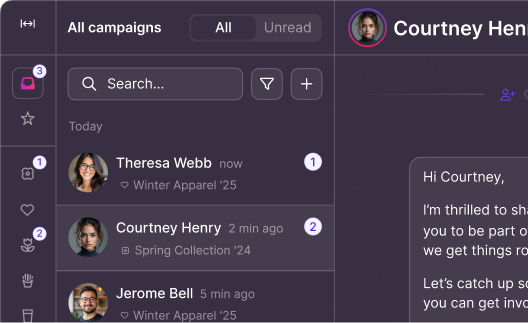 You get full visibility on open rates, reply rates, engagement per channel, and creator-level performance. Everything you need to optimize your outreach and prove ROI.