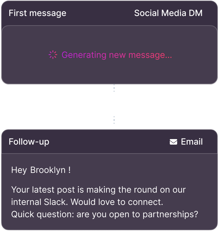 You build a sequence of steps across different channels. If a creator doesn't reply on one channel you can follow-up on another. The sequence runs automatically until you get a response.