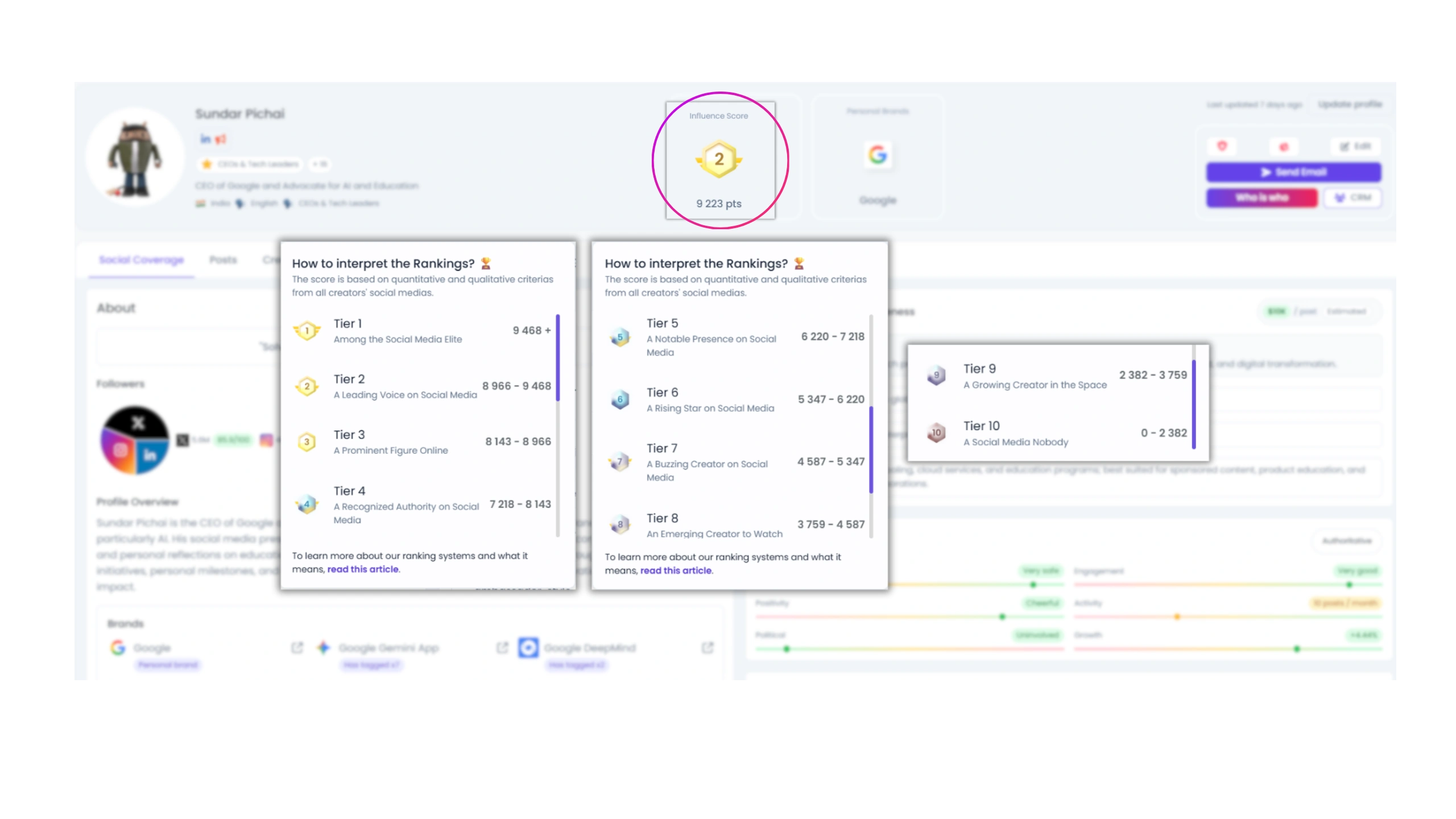 O resultado é uma avaliação abrangente que fornece uma avaliação justa da verdadeira influência de um criador em seu setor e nicho.