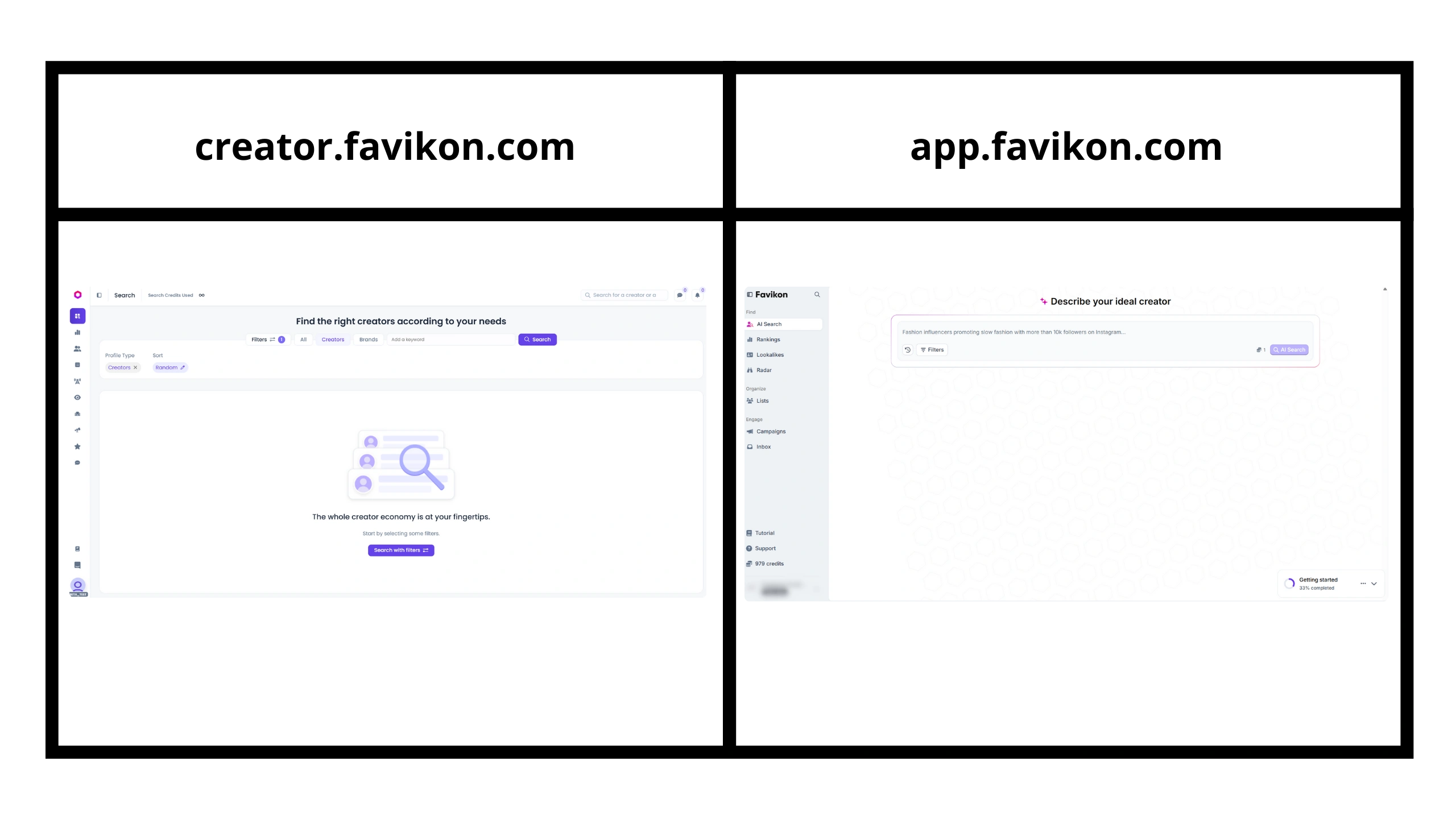 - Favikon Business (app.favikon.com): Isso foi desenvolvido para marcas e agências que desejam descobrir e gerenciar campanhas de marketing de influenciadores