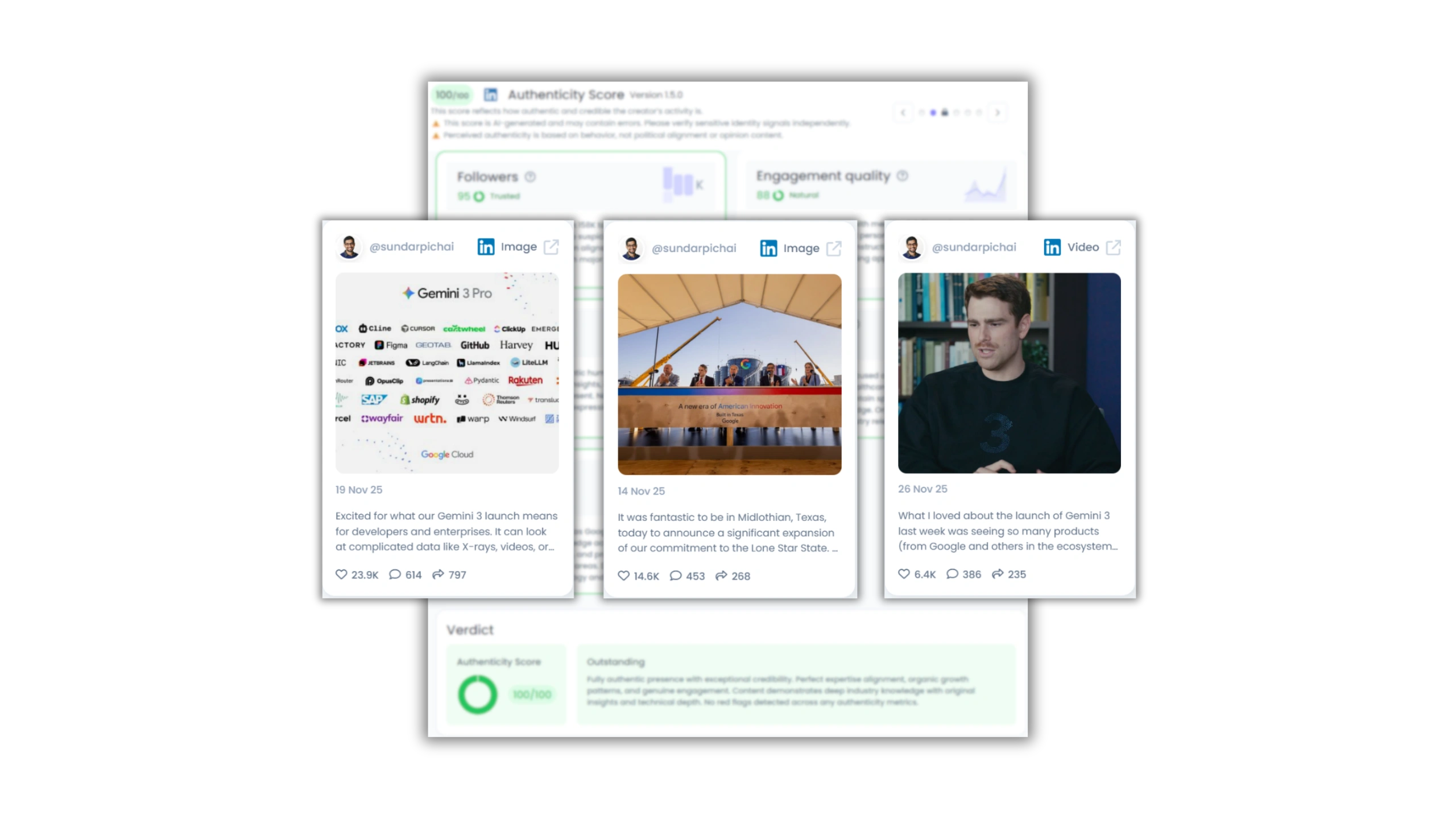 A Favikon é uma plataforma de marketing de influenciadores com inteligência artificial que criou um sofisticado sistema de classificação para medir o desempenho e a influência dos criadores de conteúdo em plataformas de mídia social, incluindo o LinkedIn. Ao contrário de contagens simples de seguidores ou métricas básicas de engajamento, o algoritmo da Favikon avalia vários fatores, incluindo engajamento, consistência, alcance e qualidade do conteúdo nas redes sociais.