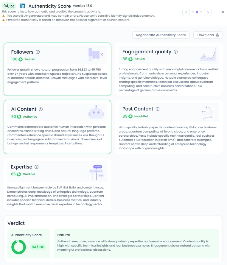 Com uma estrela Pontuação de autenticidade de 94 de 100, a presença on-line de Ana parece tão genuína quanto seu estilo de liderança. Seu feed está repleto de ideias do setor, reflexões pessoais e vislumbres de sua vida profissional diária. Os comentários de colegas e profissionais são ricos em conteúdo, mostrando um respeito compartilhado por sua transparência e intelecto. Sua capacidade de conectar discussões em nível executivo a experiências humanas reais é o que a diferencia em um mar de vozes corporativas.