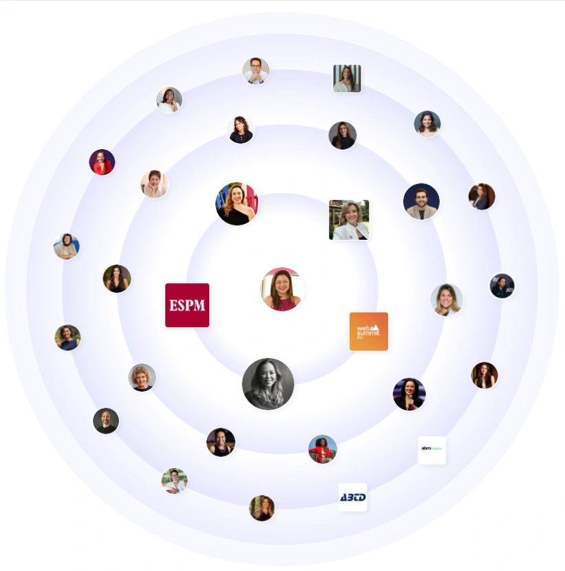 Seu círculo abrange escolas, eventos e colegas executivos. Pense na ESPM, no Web Summit Rio, nos líderes do setor em vendas e marketing e em uma forte bancada de mulheres executivas. Ela conecta fundadores, CMOs, professores e criadores que moldam o cenário de marketing e tecnologia do Brasil. A rede dá à sua mensagem alcance e autoridade.