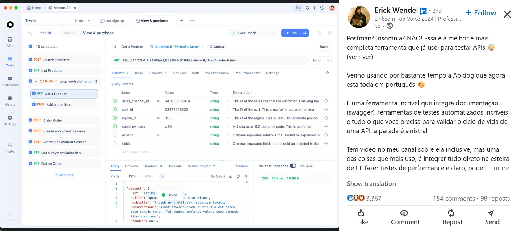 Para marcas, Erick é a combinação perfeita de autoridade e alcance. Ele tem a confiança dos desenvolvedores e é respeitado pelos líderes do setor, o que o torna uma voz forte para qualquer campanha direcionada a profissionais de tecnologia.