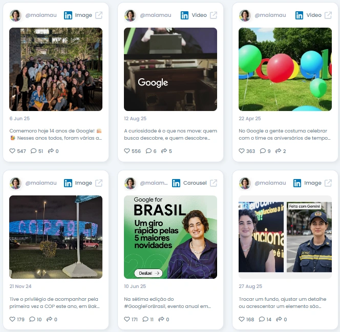 O público de Maia cresceu constantemente de 5 mil para mais de 17 mil seguidores em três anos, mostrando credibilidade e crescimento consistentes. Ela está entre os 1% melhores do LinkedIn no Brasil, com uma pontuação de influência de 5.558 pontos. Suas taxas de engajamento são fortes, com centenas de interações por postagem e feedback constante de colegas do setor. Esses números refletem uma voz genuína que se destaca no espaço corporativo.