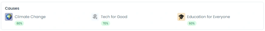 Setas é defensor público de três grandes causas globais, vinculando diretamente sua experiência profissional aos seus valores pessoais. Ele defende a Mudança Climática com 80% de alinhamento, usando sua plataforma para promover investimentos significativos da CCR em energia renovável (como o acordo Neoenergia) e operações sustentáveis. Ele apoia a Tech for Good (70%), provavelmente por meio da aplicação de tecnologia para melhorar a mobilidade sustentável e a eficiência operacional. Além disso, ele defende a Educação para Todos (60%), reconhecendo o papel fundamental das habilidades e do conhecimento em uma economia em progresso.