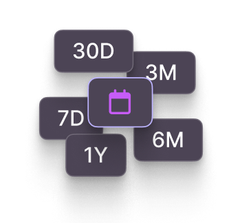 Switch between 7d, 30d, 3m, 6m, or 1yr to match your decision window