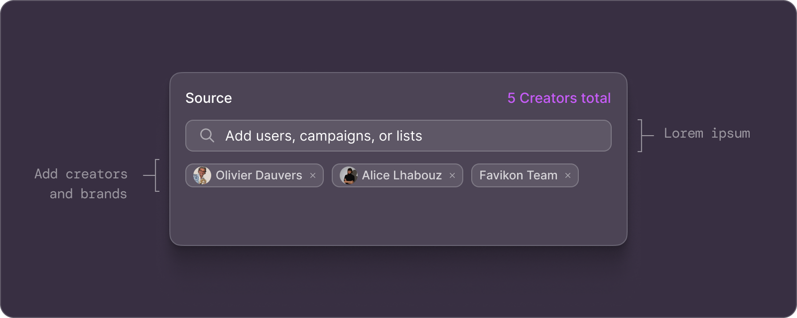O Favikon funciona em 9 plataformas de mídia social. Você pode encontrar criadores de diferentes maneiras, como classificações, radar e pesquisa de conteúdo, para identificar aqueles que terão o melhor desempenho. Nossa inteligência de verificação é única. Os perfis do Favikon são como a Wikipedia da economia dos criadores. Eles não fornecem apenas dados. Eles fornecem insights que ajudam você a tomar as decisões certas. Você também pode acompanhar o desempenho da campanha recuperando os dados de publicação dos criadores e medindo os leads gerados por meio da integração com o GA4.