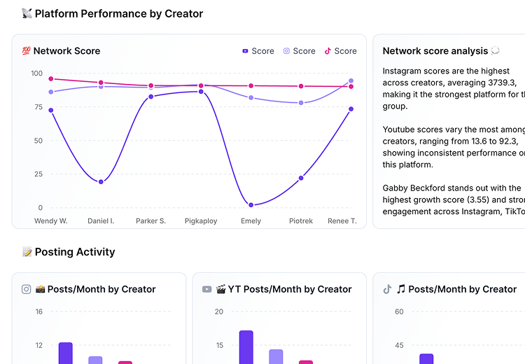 Track how each creator in your roster is performing, spot who's rising or declining, and make smarter management decisions.