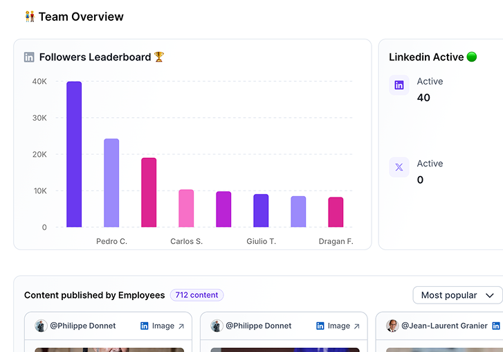 Identify your top internal ambassadors, track their content performance, and prove the ROI of advocacy programs